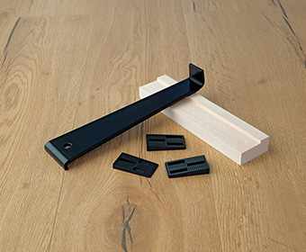 Montážny set EGGER Professional obsahuje dilatačné kliny, príklepový blok a páčidlo
